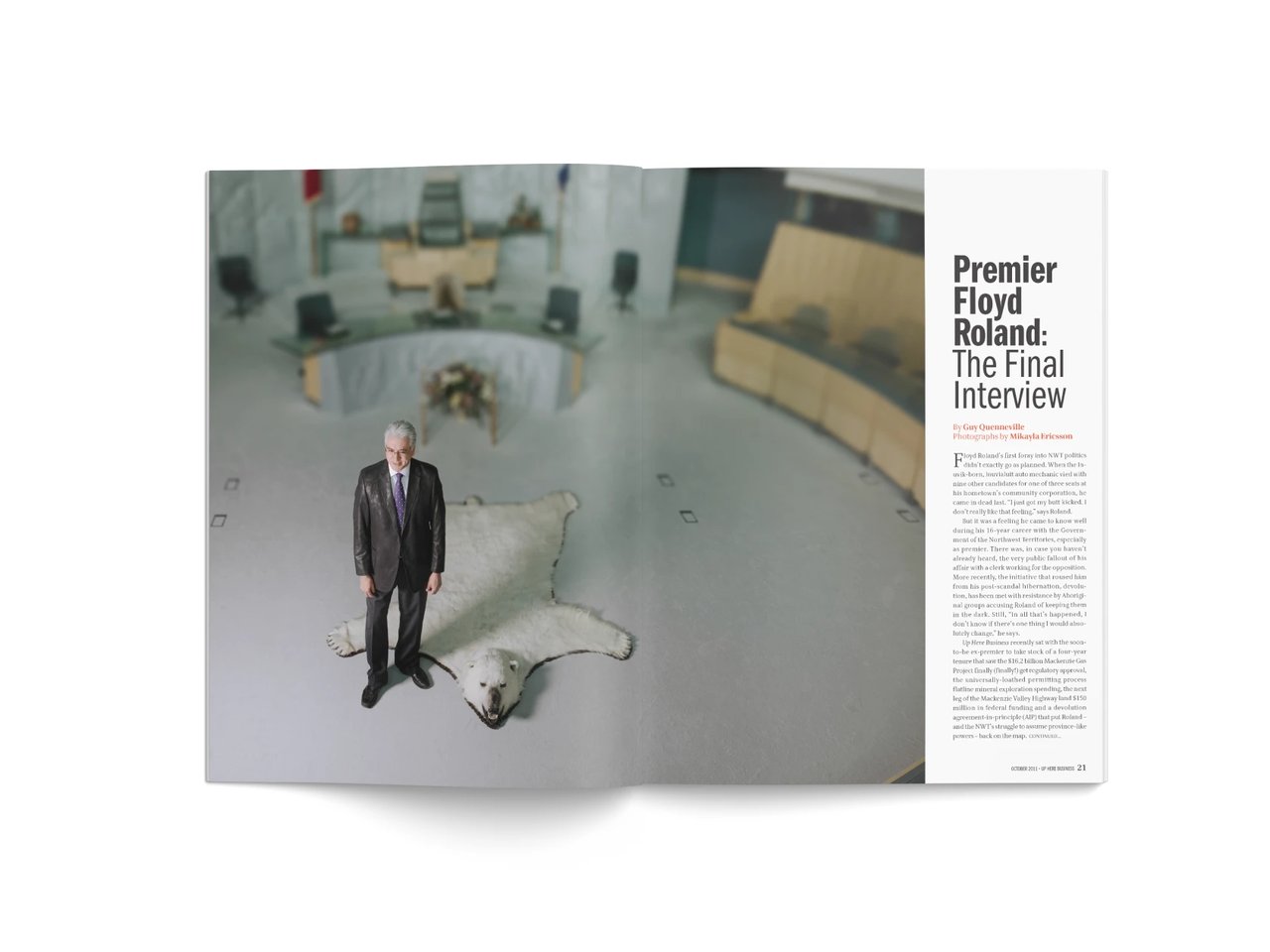 While on staff at Up Here Business, I photographed people and places across Canada’s North, from Inuvik to remote fly-in camps. A portrait of former NWT Premier Floyd Roland earned a magazine award for Best Portraiture.